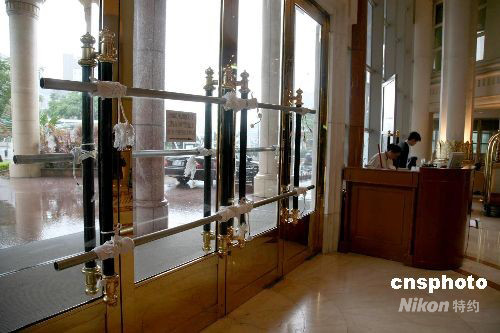 九月二十八日上午,強(qiáng)臺風(fēng)“薔薇”逼近臺灣,臺北市上空烏云密布并快速飄動,勁風(fēng)時(shí)緊時(shí)緩,雨勢時(shí)大時(shí)小,街頭車輛稀少,行人難見蹤影。臺北市政府已發(fā)出警報(bào),并宣布停班停課。臺北一家酒店大門里外均用手腕粗的鐵管捆牢,并提醒客人出入走側(cè)門。中新社發(fā) 楊旭 攝