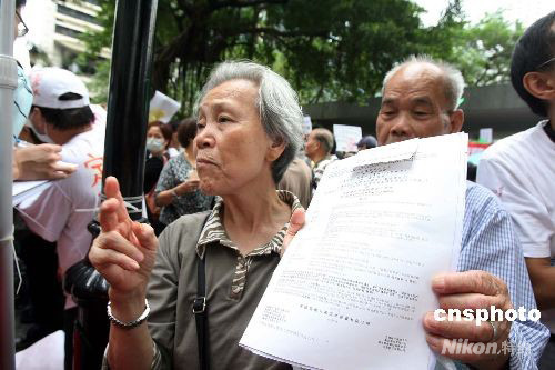 十月八日上午,逾百名受雷曼迷你債券影響的香港市民,趁新一屆立法會(huì)復(fù)會(huì)到場(chǎng)抗議,要求立法會(huì)成立專(zhuān)責(zé)委員會(huì)撤查事件。有苦主認(rèn)為,銀行回購(gòu)方案未能讓他們悉數(shù)取回本金。當(dāng)日,財(cái)政司司長(zhǎng)曾俊華重申,政府提出由分銷(xiāo)銀行回購(gòu)雷曼迷你債券方案是希望投資者盡快取回部分資金,強(qiáng)調(diào)政府不會(huì)“包底”的。中新社發(fā) 洪少葵 攝