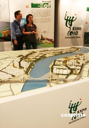 圖為觀眾在中區(qū)警署博物館展廳內(nèi)觀看上海世博會(huì)場(chǎng)地實(shí)體模型。