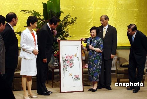 十一月三日下午,海協(xié)會會長陳云林前赴臺泥大樓,拜會已故海基會董事長辜振甫的遺孀辜嚴倬云女士。陳云林受中華全國婦聯(lián)所托,邀請辜嚴倬云女士再次訪問大陸。中新社發(fā) 洪少葵 攝