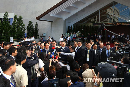 11月4日,海協(xié)會會長陳云林與;鶗麻L江丙坤前往吊唁已故著名企業(yè)家王永慶。新華社記者 邢廣利 攝