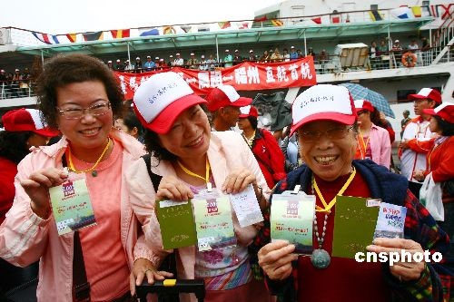 2008年11月8日上午11:30,由馬祖經(jīng)貿(mào)文化交流聯(lián)誼會(huì)理事長(zhǎng)陳雪生先生帶隊(duì),馬祖、金門(mén)及臺(tái)灣本島福州鄉(xiāng)親約500人搭乘“臺(tái)馬輪”從臺(tái)灣基隆經(jīng)彎靠馬祖福澳港后抵達(dá)福州港客運(yùn)碼頭。此行目的主要是來(lái)榕推介馬祖旅游及赴大陸各地旅游。此舉是兩岸擴(kuò)大“小三通”,特別是11月4日“兩會(huì)”商談簽署有關(guān)協(xié)議后,首次實(shí)現(xiàn)“兩馬”海上客運(yùn)航線(xiàn)延伸至臺(tái)灣本島,對(duì)福州市進(jìn)一步拓展與馬祖直接往來(lái)的范圍和層次有重要的意義。同時(shí)又是國(guó)臺(tái)辦王毅主任9·8期間在廈門(mén)舉行的“海峽西岸經(jīng)濟(jì)區(qū)論壇”上受權(quán)發(fā)布大陸方面五項(xiàng)便利兩岸同胞交往的新舉措之后,臺(tái)胞循“兩馬”航線(xiàn)并對(duì)接臺(tái)灣本島來(lái)榕人數(shù)最多的一個(gè)團(tuán)組。馬祖經(jīng)貿(mào)文化交流聯(lián)誼會(huì)理事長(zhǎng)陳雪生先生、副理事長(zhǎng)曹爾忠、陳振清先生等馬祖知名人士也隨船抵達(dá)馬尾。據(jù)悉,截止今年10月,“兩馬”航線(xiàn)已運(yùn)行3782航次,來(lái)往旅客達(dá)22.93萬(wàn)人次。中新社發(fā) 祝敏松 攝
