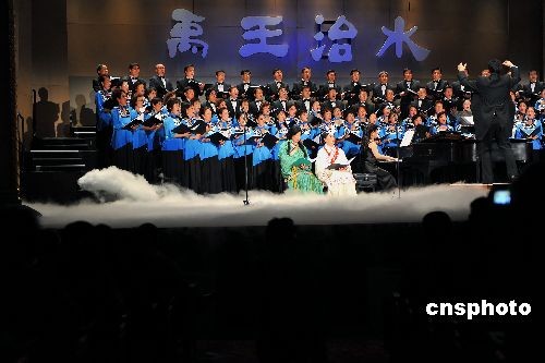 當(dāng)?shù)貢r間11月30日晚,由硅谷華人軟件專家過客(劉力前)作詞、中國著名作曲家鮑元愷作曲的大型合唱組曲《禹王治水》在圣荷西加州劇院舉行首演。匯聚兩岸三地華人華僑歌唱愛好者的清羽合唱團(tuán)和游子吟合唱團(tuán)以及當(dāng)?shù)貎和铣獔F(tuán)共同擔(dān)綱演出。此曲將于明年4月到中國大陸和臺北巡回演出!队硗踔嗡吠ㄟ^歌頌大禹“平水土,立九州”的功業(yè),溫習(xí)中華民族自強(qiáng)不息及堅韌不拔的偉大精神傳統(tǒng),回溯中華文明的源頭。中新社發(fā) 陳鋼 攝