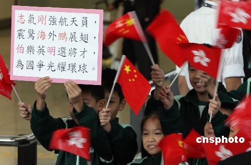 十二月五日,“神舟七號”載人航天飛行代表團(tuán)抵達(dá)香港國際機(jī)場,展開為期四天的訪港行程。四十多人的代表團(tuán)包括團(tuán)長張建啟、航天員翟志剛、劉伯明和景海鵬,以及負(fù)責(zé)這次載人航天工程的各主要系統(tǒng)指揮或設(shè)計師。中新社發(fā) 武仲林 攝