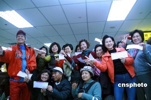 12月15日上午,臺灣復(fù)興航空332號航班從臺北松山機(jī)場起飛前往上海,這是從臺灣飛出的首個兩岸平日包機(jī)航班。登機(jī)前,部分乘客合影留念,見證這歷史性的一刻。中新社發(fā) 周兆軍 攝