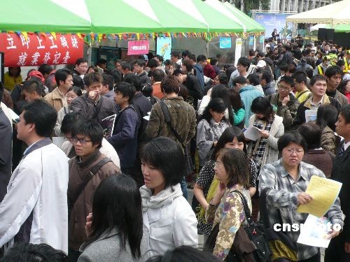 大環(huán)境經(jīng)濟(jì)不景氣,臺灣去年十二月失業(yè)率超過百分之五,失業(yè)人口近五十無萬。“主計處”對今年經(jīng)濟(jì)成長率的預(yù)測為負(fù)百分之二點九七。臺北市政府勞工局在二十一日舉行了一場就業(yè)博覽會,釋出兩千多個工作職位,并提供職業(yè)訓(xùn)練課程供民眾申請。中新社發(fā) 路梅 攝