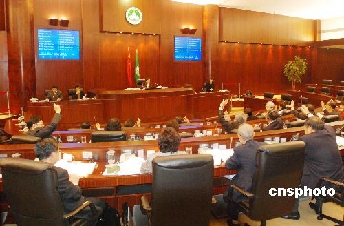澳門立法會(huì)二月二十五日下午經(jīng)細(xì)則性討論后,高票通過了《維護(hù)國家安全法》。圖為法案通過后,議員們紛紛舉手發(fā)言。中新社發(fā) 畢永光 攝