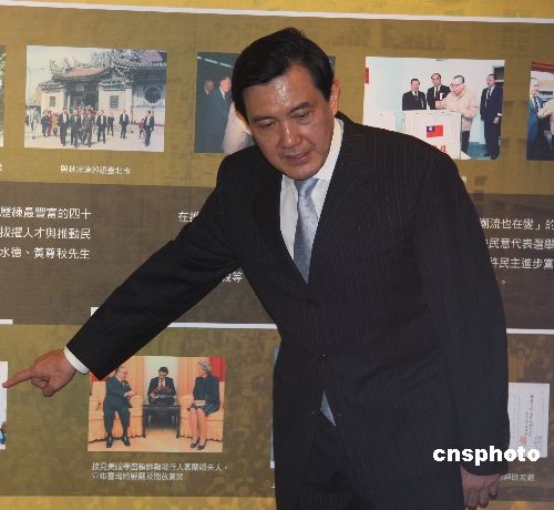 4月13日是蔣經(jīng)國(guó)先生百年誕辰,臺(tái)灣近日舉辦系列紀(jì)念活動(dòng)。“永續(xù)經(jīng)國(guó)”蔣經(jīng)國(guó)先生百年誕辰紀(jì)念特展4月11日在臺(tái)北市“國(guó)父紀(jì)念館”開幕。臺(tái)灣領(lǐng)導(dǎo)人馬英九出席開幕式,并親自給前來(lái)觀展的市民介紹1986年馬英九擔(dān)任翻譯時(shí)和蔣經(jīng)國(guó)先生的合照。中新社發(fā) 耿軍 攝
