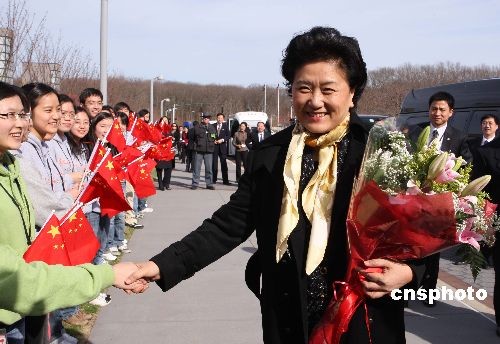 當(dāng)?shù)貢r間4月13日,率領(lǐng)代表團(tuán)正在美國訪問的國務(wù)委員劉延?xùn)|,來到紐約州立大學(xué)石溪分校參加一系列活動,并看望了接受獎學(xué)金正在紐約州立大學(xué)學(xué)習(xí)的150名四川地震災(zāi)區(qū)大學(xué)生代表。圖為劉延?xùn)|到達(dá)石溪分校時,受到學(xué)生們的熱烈歡迎。中新社發(fā) 魏晞 攝