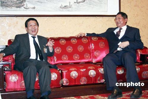 4月20日,天津商會會長張?jiān)?右一)在天津會見前來參加津洽會的葡萄牙華人總會執(zhí)行長周一平(左一)。中國·天津第16屆投資貿(mào)易洽談會備受國外、境外機(jī)構(gòu)及客商關(guān)注,20多個(gè)國家和地區(qū)的2000多名境外客商參加了本屆津洽會,參會人數(shù)超過往屆。來自世界各國及地區(qū)的政府、機(jī)構(gòu)、客商踴躍參加現(xiàn)場洽談,尋找合作商機(jī)。中新社發(fā) 金立冬 攝