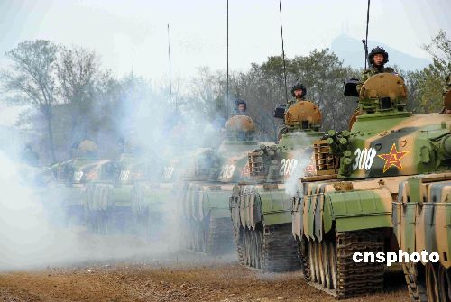 10月底,“鐵拳-2007”復(fù)雜電磁環(huán)境下機步師實兵檢驗性演習(xí)完成電磁對抗,進入實兵交戰(zhàn)階段。圖為裝甲部隊向演習(xí)地域集結(jié)。中新社發(fā) 周和平 攝