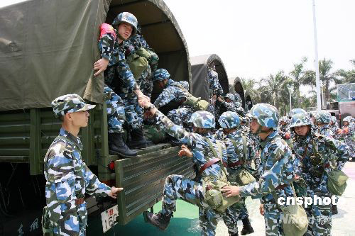 中國海軍陸戰(zhàn)隊(duì)官兵緊急起程奔赴汶川災(zāi)區(qū)
