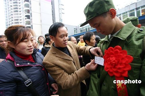 11月19日,進藏新兵在親人們的歡送下離開家鄉(xiāng)。當(dāng)日,重慶市永川區(qū)首批進藏新兵在區(qū)人武部大院集中,完成了相關(guān)交接手續(xù)后,新兵們在親人的祝福聲中,登上大巴車依依不舍地告別親人、告別故鄉(xiāng),踏上了保家衛(wèi)國的征程。中新社發(fā) 陳仕川 攝