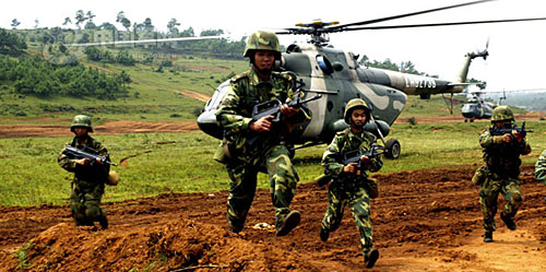 圖:成都軍區(qū)某部與陸航部隊協同演練