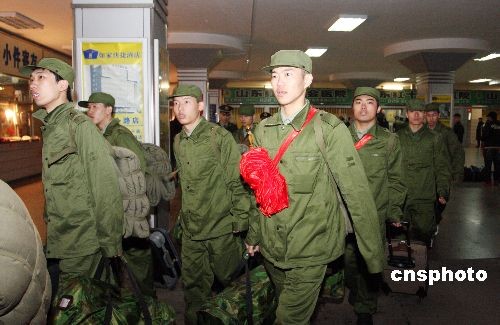 12月11日,來自江蘇、河北兩省的首批500余名新戰(zhàn)士抵達(dá)濟(jì)南軍區(qū)某部,開始軍旅生活。這些新戰(zhàn)士將集中進(jìn)行3個(gè)月的軍事強(qiáng)化訓(xùn)練,在完成社會(huì)青年向合格軍人的轉(zhuǎn)變后,充實(shí)到基層執(zhí)勤第一線,擔(dān)負(fù)起維護(hù)濟(jì)南社會(huì)穩(wěn)定、保衛(wèi)人民生命財(cái)產(chǎn)安全的神圣職責(zé)。中新社發(fā) 梁志杰 攝