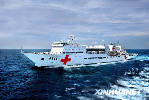 2008年12月22日,浙江舟山,我國(guó)自主設(shè)計(jì)、建造的首艘大型專業(yè)醫(yī)院船,也是世界上第一艘大型專業(yè)醫(yī)院船---866岱山島船命名授旗,開始在海軍服役。