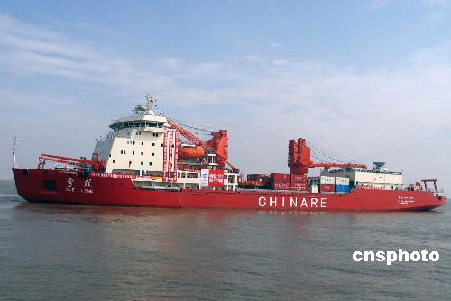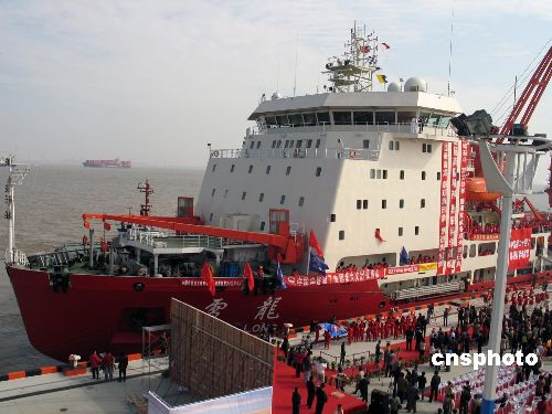 十一月十二日上午十時(shí)三十分,首次投入使用的外高橋的中國(guó)極地科考船專(zhuān)用碼頭上,彩旗迎風(fēng)招展。已舊貌換新顏的中國(guó)唯一從事極地破冰航行的科考船“雪龍”號(hào)身披紅裝從這里啟航奔赴南極,執(zhí)行第二十四次南極科考任務(wù)。中新社發(fā) 陸從兵 攝