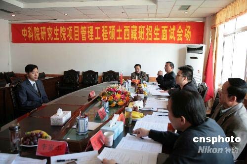 5月8日,中國科學(xué)院研究生院首次西藏研究生班招生在拉薩面試。今天是北京奧運圣火勝利登頂珠峰的一天,上午的招生面試也推遲了一個小時,專家及考生觀看了北京奧運圣火勝利登頂珠峰的電視直播。隨后來自西藏各個行業(yè)的40多名藏漢考生懷著激動和喜悅的心情參加了本次面試答辯。中新社發(fā) 扎西朗杰 攝