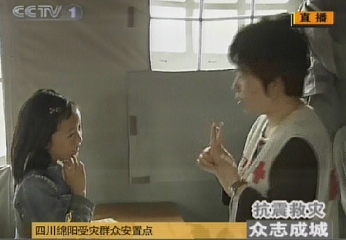 為了讓地震幸存者的心理創(chuàng)傷早日愈合,一支由奧運冠軍組成的特別的心理救援團抵達四川災(zāi)區(qū)為當(dāng)?shù)厥転?zāi)民眾帶去心靈的寬慰。圖為在四川綿陽受災(zāi)群眾安置點,鄧亞萍為孩子們做心理輔導(dǎo)。
