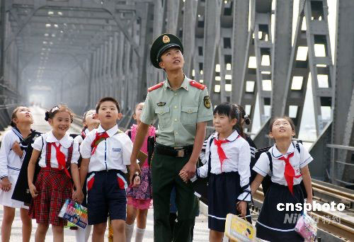 9月9日,開學伊始,又逢教師節(jié),遼寧丹東邊防檢查站邀請駐地多所小學師生參觀中朝友誼橋,與邊防戰(zhàn)士一同描繪第二故鄉(xiāng)美景。中新社發(fā) 陳浩浩 攝