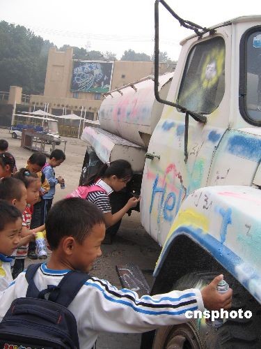 10月21日,長沙世界之窗舉行的“快樂秋游--做一天搗蛋的孩子”吸引了眾多小學(xué)生參與。平日里的乖孩子們“亂喊亂叫”、“亂摔亂打”、“亂涂亂畫”,肆無忌憚地把心中壓力和情緒釋放出來。中新社發(fā) 肖前輝 攝