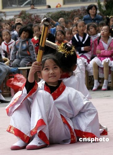 10月29日,山東威海長峰小學(xué)在校園內(nèi)以“詩詞曲賦潤心田 傳統(tǒng)文化駐校園”為主題開展校園文化節(jié)活動(dòng)。在文化節(jié)上,學(xué)生們將在《論語》、《弟子規(guī)》等經(jīng)典課本所學(xué)、所悟、所得,在老師的指導(dǎo)下,編排成節(jié)目展示出來。 據(jù)介紹,兩年來,學(xué)校通過以經(jīng)典古文誦讀為突破口,使傳統(tǒng)文化常駐校園。中新社發(fā) 海云飛 攝
