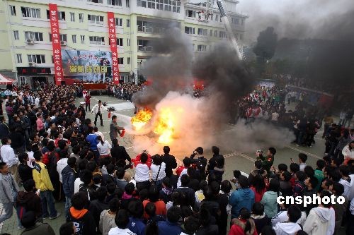 為汲取上海商學院“11.14”重大火災(zāi)事故教訓,11月22日上午,湖北三峽大學舉行了消防安全宣傳活動。組織學校師生開展了滅火逃生疏散演練,現(xiàn)場還對收繳的1000余支“熱得快”進行銷毀,提高師生的消防安全意識。中新社發(fā) 方佩 攝