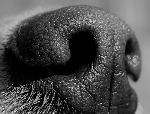 據(jù)測(cè)量,人類的嗅覺細(xì)胞有500萬(wàn)個(gè),而狗的嗅覺細(xì)胞則有2億多個(gè),是人類的40倍,可以分辨大約2萬(wàn)種氣味,經(jīng)過(guò)特殊訓(xùn)練的狗,可以分辨出犯罪分子攜帶的可卡因,甚至可以分辨出癌癥的氣味。人們研究的焦點(diǎn)始終聚集在狗的嗅覺器官如何捕捉氣味,無(wú)人關(guān)注狗鼻子上的粘液。傳統(tǒng)的觀點(diǎn)認(rèn)為,狗的鼻子保持濕潤(rùn)是身體健康的一種表現(xiàn),但是現(xiàn)在科學(xué)家發(fā)現(xiàn)狗鼻子上的粘液層還有助于它們辨別氣味。