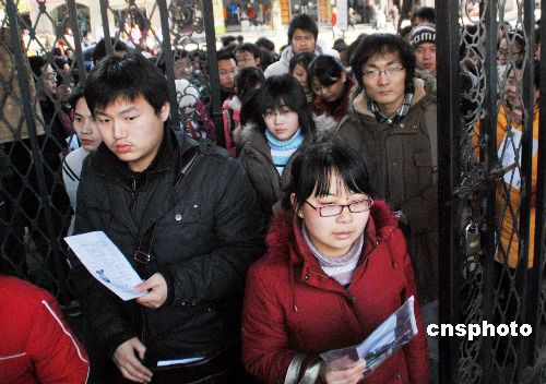 2009年1月10日,安徽省51860名考生走進考場參加2009年全國碩士研究生入學(xué)考試,報考人數(shù)比上年增加1876人。據(jù)悉,躲避就業(yè)壓力是考研大軍只增不減的一個重要原因。中新社發(fā) 從啟 攝