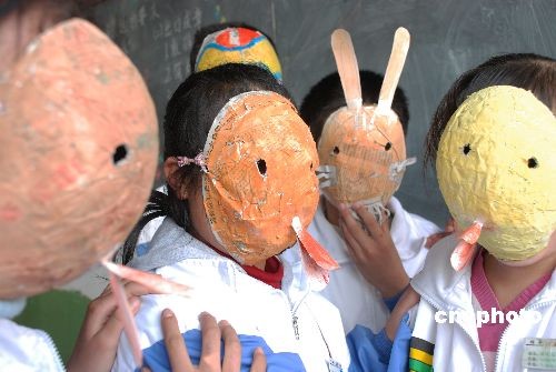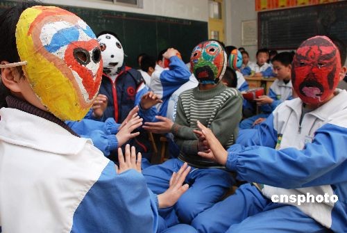 3月16日,山東鄒平縣實(shí)驗(yàn)中學(xué)的學(xué)生用自制的面具表演校園生活自編劇。學(xué)生們用舊報(bào)紙?jiān)诔錃鈿馇蛏辖?jīng)過(guò)糊紙、描彩、勾畫、裁切等步驟自制個(gè)性面具,并進(jìn)行展示評(píng)比,以小組為單位,以學(xué)生身邊所見所聞為表演題材自編短劇在課堂上展演。據(jù)悉,該校成立機(jī)器人、繪畫、舞蹈、表演、攝影等各種創(chuàng)新活動(dòng)小組,以培養(yǎng)學(xué)生動(dòng)手能力和創(chuàng)新能力。中新社發(fā) 董乃德 攝