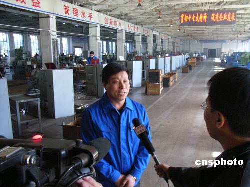 10月22日,齊齊哈爾建華公司黨委書(shū)記在接受采訪。當(dāng)日,中國(guó)共產(chǎn)黨第十七屆中央委員會(huì)第一次全體會(huì)議勝利閉幕。國(guó)家老工業(yè)基地齊齊哈爾市的產(chǎn)業(yè)工人非常高興,中國(guó)兵器工業(yè)集團(tuán)公司齊齊哈爾建華公司黨委書(shū)記谷云龍代表全體員工表示:堅(jiān)決擁護(hù)十七大的各項(xiàng)決議,擁護(hù)新一屆中央領(lǐng)導(dǎo)集體,緊密地團(tuán)結(jié)在黨中央周?chē),不斷增?qiáng)自主創(chuàng)新能力,為國(guó)家發(fā)展,社會(huì)和諧人民進(jìn)步多做貢獻(xiàn)。中新社發(fā) 王云龍 攝