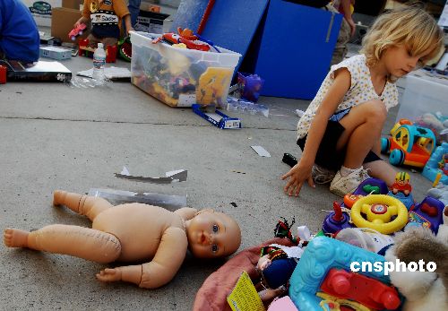 圖為一位小災(zāi)民在圣地牙哥高通體育館臨時(shí)避難場(chǎng)設(shè)立的兒童樂園里。