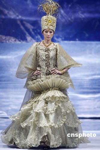 十一月四日,2007年中國國際時(shí)裝周在北京繼續(xù)進(jìn)行,在新疆服裝設(shè)計(jì)師孫秀琴時(shí)裝專場發(fā)布會(huì)上,設(shè)計(jì)師用質(zhì)樸的服裝語言為觀眾呈現(xiàn)了新疆優(yōu)美、燦爛的民族服飾文化。中新社發(fā) 盛佳鵬 攝