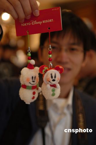 圖為迪斯尼樂(lè)園推出今年的圣誕吉祥物“雪人一家”鑰匙掛飾。