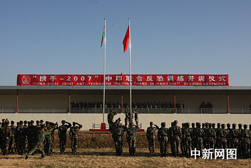 12月21日,“攜手——2007”中印陸軍聯(lián)合反恐訓(xùn)練在中國昆明某訓(xùn)練基地正式拉開帷幕。張雷 攝