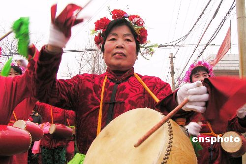 十二月三十一日,河南平頂山市湛河區(qū)村民自發(fā)組織起來,慶祝新年來臨。該區(qū)常住農(nóng)民,近年大力發(fā)展農(nóng)民文化事業(yè)豐富文化生活。各鄉(xiāng)各鎮(zhèn)都有自己的秧歌隊鼓樂隊。逢過年過節(jié),都會自發(fā)組織起來,自娛自樂。中新社發(fā) 慎重 攝