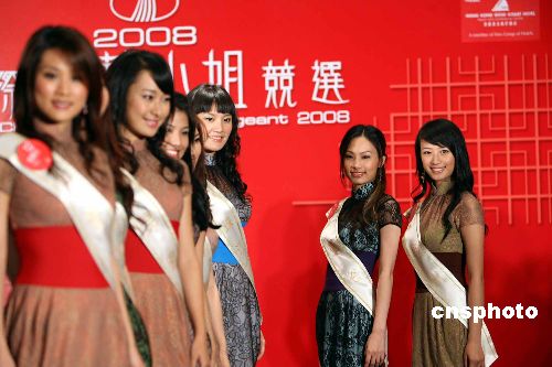 1月9日,參加香港TVB主辦的“2008國(guó)際中華小姐競(jìng)選”的23位佳麗,在香港黃金海岸酒店靚麗登場(chǎng),與傳媒會(huì)面。中華小姐競(jìng)選本月26日將在廣東佛山舉行。中新社發(fā) 洪少葵 攝