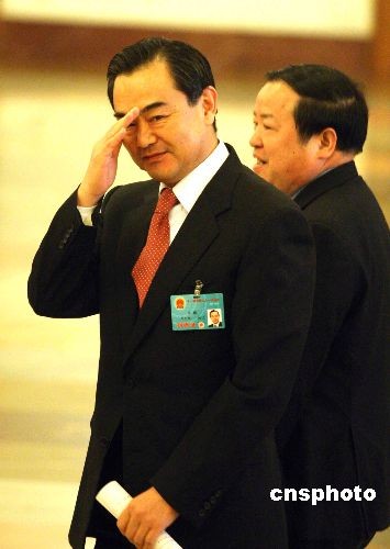 3月11日,十一屆全國(guó)人大一次會(huì)議第四次全體會(huì)議在北京人民大會(huì)堂舉行,聽(tīng)取國(guó)務(wù)委員兼國(guó)務(wù)院秘書(shū)長(zhǎng)華建敏關(guān)于國(guó)務(wù)院機(jī)構(gòu)改革方案的說(shuō)明。與媒體一向熟悉的外交部副部長(zhǎng)王毅步入會(huì)場(chǎng)時(shí)向眾記者行禮。中新社發(fā) 張宇 攝