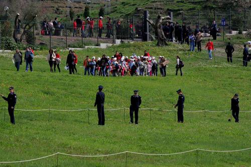 希臘奧林匹亞,圣火采集現(xiàn)場晴空萬里。