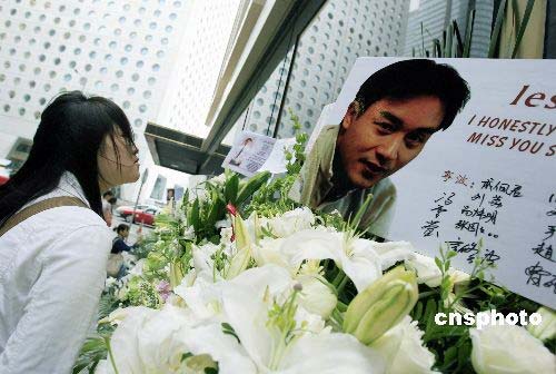 圖:鮮花簇簇寄托對(duì)張國(guó)榮的思念