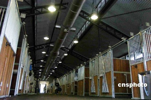奧運馬房有超過二百個馬格安置馬匹,馬房有空調(diào)系統(tǒng),確?諝饬魍。馬房亦設(shè)有閉路電視系統(tǒng),二十四小時監(jiān)察馬匹狀況。 譚達明 攝