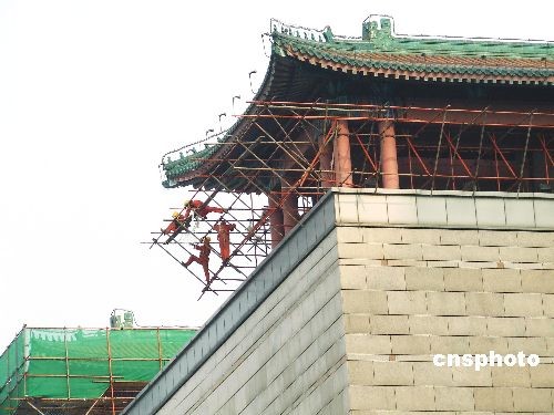 4月9日,北京西站搭起綠網(wǎng)準(zhǔn)備進(jìn)行環(huán)境“美容”,北京西站將以全新面貌接待中外游客迎接奧運會的到來。此次環(huán)境整治工程涉及景觀照明、外墻清洗、古建油飾等項目。作者: 追影