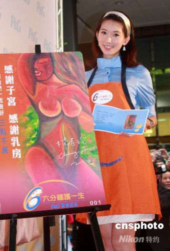 4月12日下午,“臺灣第一名!绷种玖嵩谂_北出席乳癌檢測公益活動,呼吁女性時刻關(guān)心自己的健康。中新社發(fā) 董會峰 攝
