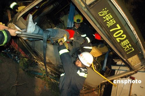 圖為消防人員將被困車內的傷員救出。中新社發(fā) 郭晉嘉 攝
