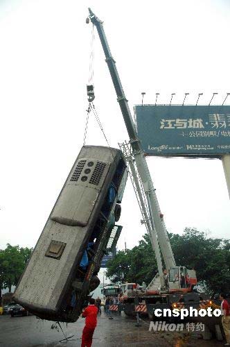 圖為事故車輛被成功吊離出事地點(diǎn)。中新社發(fā) 郭晉嘉 攝