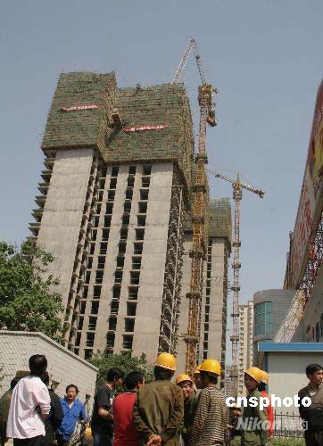 西安感覺強烈震感,一個正在施工的建筑工地吊塔在高空被震斷,操作員當場摔下身負重傷,其他建筑工人被緊急疏散。目前傷員正在醫(yī)院搶救,尚未脫離生命危險。中新社發(fā) 王振001 攝