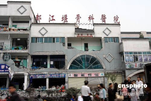 北京時間5月12日14時28分,在四川汶川縣(北緯31度,東經103.4度)發(fā)生7.8級地震。都江堰市區(qū)多處房屋受到地震損壞。中新社發(fā) 黃榮 攝