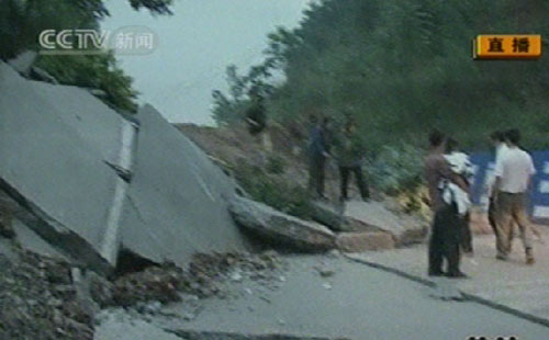 圖:綿陽(yáng)市北川縣災(zāi)情嚴(yán)重 公路擰成“麻花”(2)
