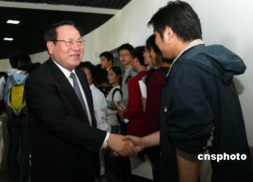 清華大學(xué)學(xué)子為地震災(zāi)區(qū)獻(xiàn)血 校長顧秉林慰問同學(xué)(2)