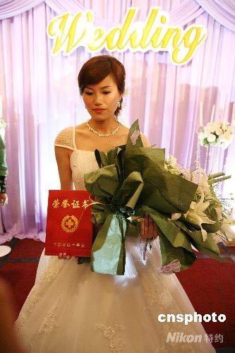 5月16日晚,在南京金陵飯店鐘山廳舉行了一場特殊的婚禮。當(dāng)身披婚紗的新娘踏上紅毯時(shí),應(yīng)該站在紅毯另一端的新郎--南京空軍某部飛行員饒新,卻正在千里之外的四川災(zāi)區(qū)執(zhí)行救援任務(wù)。這場只有新娘出席的婚禮感動了整個南京城。中新社發(fā) 鐘山 攝